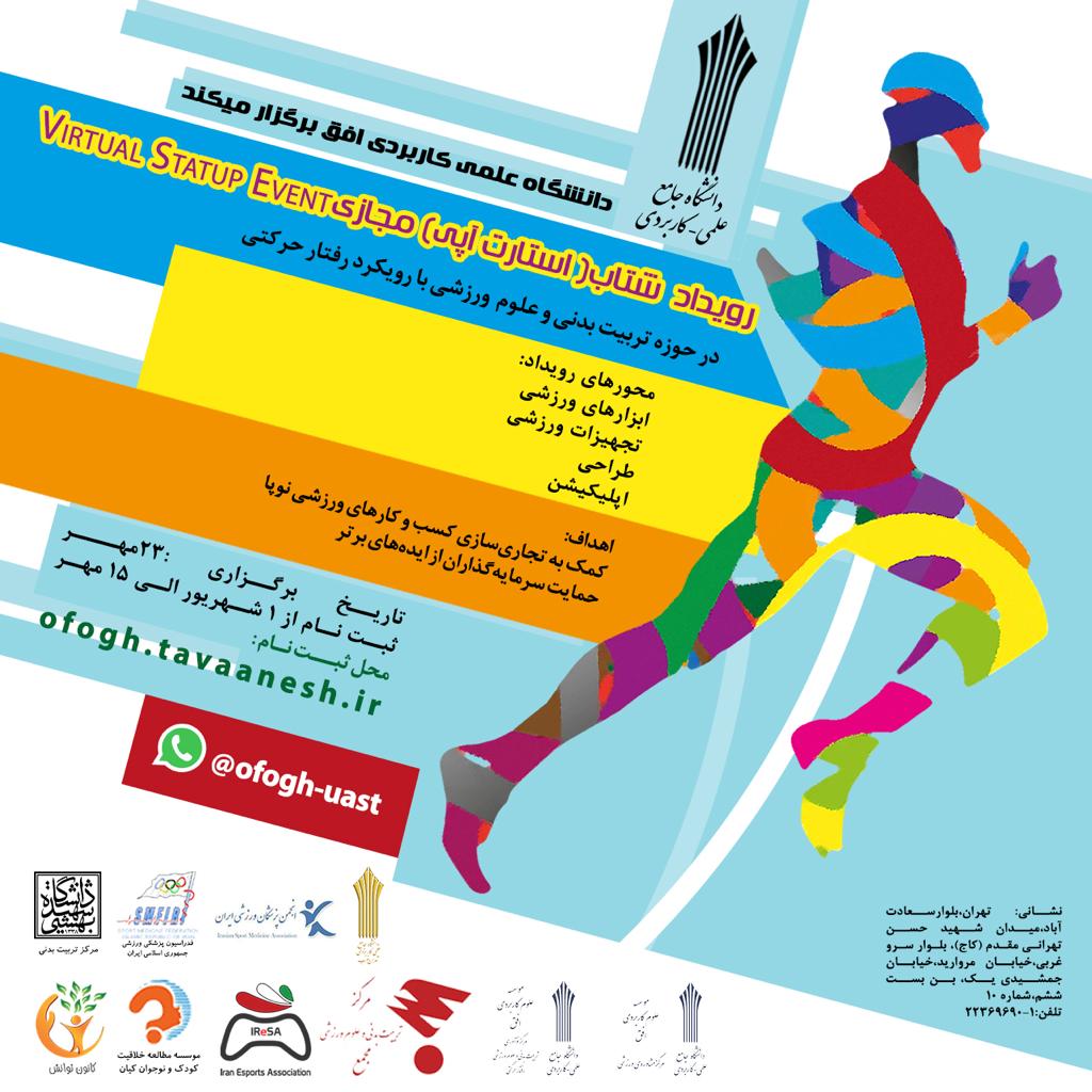 همچنین رویداد شتاب (استارتاپی) در حوزه (( تربیت بدنی ، علوم ورزشی با رویکرد رفتار حرکتی )) به صورت مجازی توسط مرکز آموزش علمی کاربردی افق (جهانگردی2) فردا چهارشنبه مورخ 99/07/23 ساعت 13-10 برگزار میشود. علاقمندان می توانند با استفاده از لینک برگزاری رویداد (http:// 46.209.220.131/twresarch) در این رویداد شرکت نمایند.
