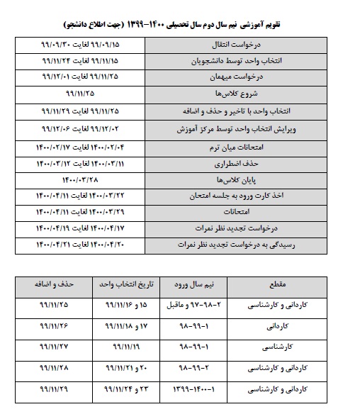 تقویم آموزشی نیم سال دوم سال تحصیلی ۱۴۰۰-۱۳۹۹ دانشگاه جامع علمی کاربردی اعلام شد