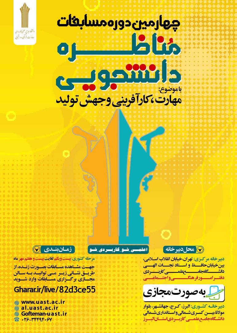 شایان ذکر است چهارمین دوره مسابقات مناظره دانشجویی که از روز بیستم مهرماه سالجاری در استان البرز به صورت مجازی در حال برگزاری است .