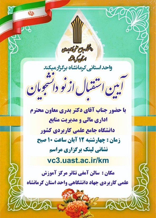 آیین استقبال از نو دانشجویان دانشگاه علمی کاربردی استان کرمانشاه چهارشنبه ۱۲آبان برگزار می شود ۱۰ آبان ۱۴۰۰ | ۱۰:۴۲ کد : ۵۷۱۶۶ اخبار ارسال به دیگران نام شما ایمیل شما ایمیل دریافتکننده ارسال انصراف تعداد بازدید:۶۰۵